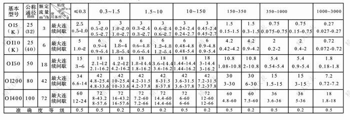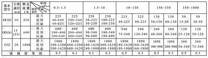備注:1.測量冷水的流量范圍,連續(xù)運(yùn)行時(shí)大流量取0.3-1.5mPa.s欄中最大流量的50%;最大流量取欄中最大流量的70%;