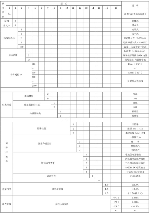 ▮渦街流量計(jì)產(chǎn)品型號(hào)標(biāo)記