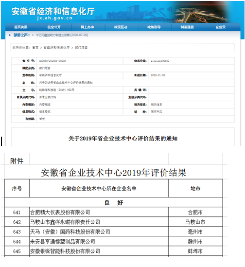 根據(jù)《安徽省企業(yè)技術中心認定管理辦法》(皖經(jīng)信科技〔2018〕46號)等相關文件,合肥精大儀表股份有限公司通過了2019年度省級技術中心認定。