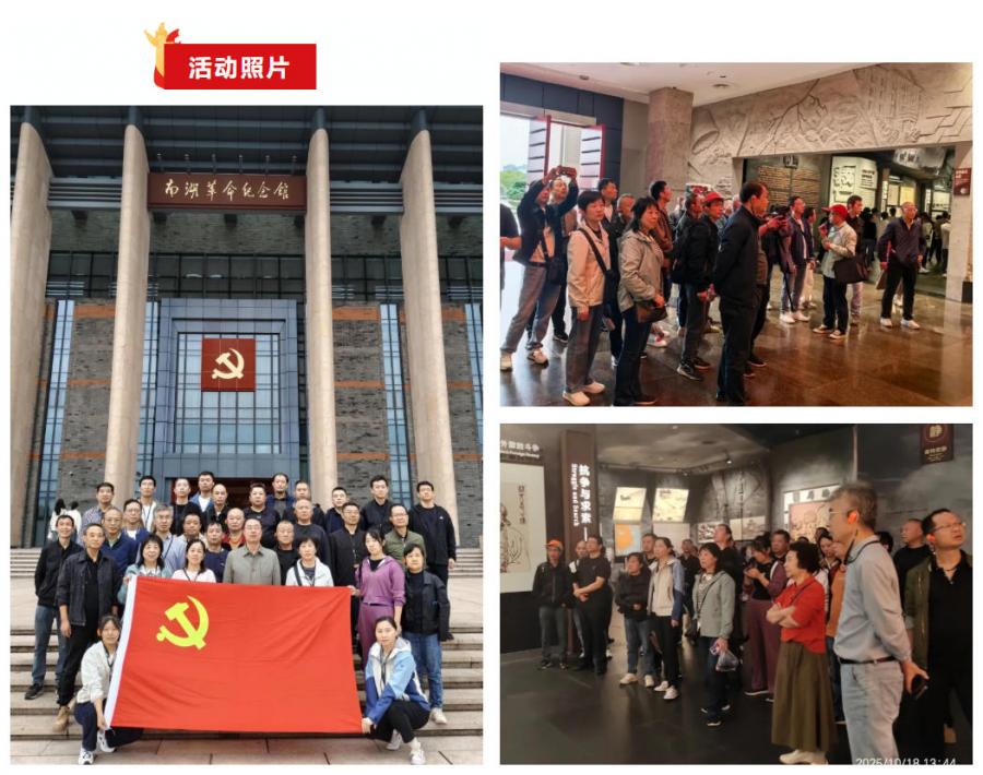 下午走進南湖革命紀念館,黨員們通過文物、多媒體、場景復原等形式,系統(tǒng)學習黨的光輝歷程。“紅船起航”展區(qū)全屏投影還原“一大”場景,讓黨員身臨其境;“新時代成就”單元的數據與實物展示,激發(fā)了黨員的自豪感與責任感。隨后大家觀看了1949年珍貴的開國大典影像,當毛澤東主席宣告“中華人民共和國中央人民政府今天成立了”時,全場黨員齊聲跟誦,眼眶濕潤。這份跨越時空的情感共鳴,讓大家深切體悟到革命先輩的初心堅守與民族復興的磅礴力量,更堅定了傳承紅色基因、踐行使命擔當的信念。